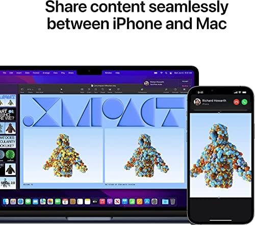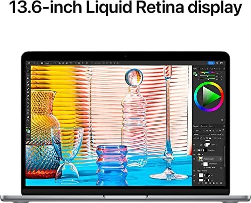 About this item SUPERCHARGED BY M2: The 13.6-inch MacBook Air laptop is a portable powerhouse. Get more done faster with a next-generation 8-core CPU, up to 10-core GPU and up to 24GB of unified memory. UP TO 18 HOURS OF BATTERY LIFE: Go all day and into the night, thanks to the power-efficient performance of the brand new Apple M2 chip. (Up to 18 hours of video playback) BIG, BEAUTIFUL DISPLAY: The 13.6-inch Liquid Retina display features 500 nits of brightness, P3 wide color, and support for 1 billion colors for vibrant images and incredible detail. STRIKINGLY THIN DESIGN: The redesigned MacBook Air is more portable than ever and weighs just 2.7 lbs. It’s the incredibly capable laptop that lets you work, play or create anything, anywhere. VERSATILE CONNECTIVITY: The MacBook Air features a MagSafe charging port, two Thunderbolt 3 ports and a headphone jack that lets you connect and power high-speed accessories.