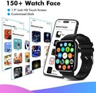 About this item Call Receiving/Dialing & Read Message-Smart watch is equipped with a high-quality speaker, after connecting to Bluetooth, can directly use the watch to answer make calls/play music/read messages/store contacts/view call history. Smart watches for men /women allow you to exercise, fitness, and bike hands-free while never missing any calls & messages during meetings or workouts. Android/iPhone smart watch can also receive other notifications, such as WhatsApp, Twitter, Facebook, Instagram, etc. All-day Health Monitoring-The activity tracker smart watch can detect your blood pressure/blood oxygen/heart rate/pressure&breathing at rest in real-time. You can enable 24-hour heart rate detection in the APP. Smartwatch monitors sleep status (deep sleep, light sleep, and wake-up time) and provides comprehensive sleep quality analysis. It can also record and predict a girl’s physiological period. With this fitness watch for men and women, you can have a healthier, more active life. 100+ Sports Modes & Multifunctional-Step tracker watch for men supports 100+ sports modes, which cover both common sports like running, and cycling, as well as more specialized sports. Keeps accurate records of steps, travel distance, and calories burned. Smart watch for Android phones have many daily practical functions like, weather information, music playback, camera control, alarm clock, stopwatch, breathing training, find phone, sedentary/drink reminder, calculators, AI control, and games. IP67 Waterproof & Broad Compatibility–The waterproof smartwatch meets the IP67 waterproof standard. You can wear it while washing your hands, running in the rain, Not suitable for swimming, diving and bathing. (Do not let the watch soak in seawater and hot water, such as hot springs) It can support most Android and iOS phones(Android 5+, iOS 9+). It can be used for 5-7 days when fully charged, and the standby time is over 30 days with a 290 mAh large-capacity battery. 1.9″ Large Screen & 100+ Dials–This fitness smart watch has a 1.83″ HD full-rounded touch screen. Adjustable brightness allows you to easily read in the sun or the dark. We have carefully designed beautiful UI and more than 100 watch faces for you, allowing you to switch watch face styles through the App (Da fit) to design your style dial. It supports 28 languages. Please use a 5V charger to fully charge the watch before turning it on.
